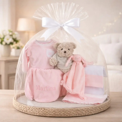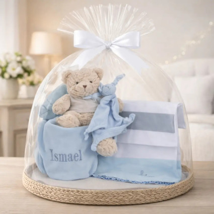 Vous pouvez trouver des paniers pour bébés en rose, bleu et gris, et avec une grande variété de produits. Certains de nos paniers bébé sont plus orientés vers l'heure du bain, avec un peignoir personnalisé et des serviettes, d'autres sont axés sur l'heure du coucher du bébé, avec des draps et des oreillers personnalisés, et d'autres sont plus axés sur le jeu du bébé avec notre produit phare, le mordedor bebé Nicky. Quel que soit le type de panier nouveau-né que vous recherchez, dans ce catalogue, vous trouverez le cadeau bébé parfait qui fera le plus grand bonheur des parents.